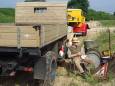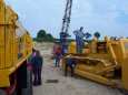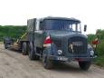 Die Vorführungen wurden eindeutig geprägt von der Armada schwäbischer Wertarbeit, mit der u.a. der Kaelble-Sammler Radermacher aus seiner Heimat angereist war. Immerhin bedient man sich zum Transport der Planierraupe PR 661T und ihres Schildes jeweils eines Kaelble-Zuges, um mit historisch korrekter Geräuschkulisse und Geschwindigkeit anzureisen, das allerdings schon eine Woche vorher, denn wir sind ja alle nicht mehr die Jüngsten! Wenn doch auch die Tankrechnung mit 50 Pfennig pro Liter noch so historisch korrekt ausgefallen wäre.... So gilt es also, die Menckmütze zu ziehen vor so viel Enthusiasmus, der mit der historischen Zugabe eines hinterradgelenkten Kaelble-Radladers SL1450 gekrönt wurde - soweit ich weiß, eine Neuvorstellung in der Szene.