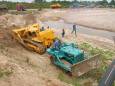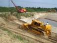 Endlich auch mal wieder vom Bauhof geholt wurde der bislang einmalige Menck M40-Tieflöffelbagger von Hans-Jürgen Weber aus Hamburg, der sein Betätigungsfeld beim Abbau von Füllsand direkt über der Wasserlinie fand. Besonders beim nachbarschaftlichen Arbeiten mit dem gelben Weserhütte-Hydraulikbagger HW70 war augenfällig, welchen Fortschritt die Hydraulik im Bezug auf Präzision und Vielseitigkeit gegenüber den Seilmaschinen bot.
