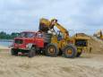 Auch 2007 wurde in einer Sandgrube bei Fredenbeck in der Nähe von Stade wieder ein ganz kleines Baggertreffen abgehalten, auf Wunsch des Kiesgrubenbetreibers ohne öffentliche Ankündigung, was in erster Linie versicherungstechnische Gründe hat. Es ergab sich so die Möglichkeit, Maschinen und LKW bei vernünftiger Motivwahl in fast natürlicher Umgebung und ohne begleitende Menschenmenge zu fotografieren und zu filmen. Ehrlicherweise muß man aber sagen, dass moderne Windräder im Hintergrund den historischen Eindruck schon etwas mildern, aber dazu weiter unten mehr.