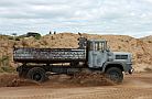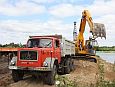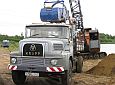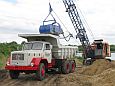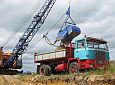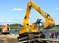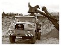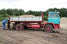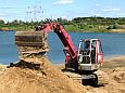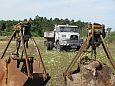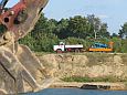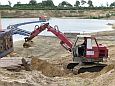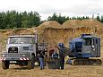 Zum wiederholten Mal bot sich in einer Sandgrube bei Stade die Möglichkeit, in übersichtlichem Rahmen mit Maschinen zu spielen. Gegenüber dem letzten Mal war die Grube selbst zwar nicht kleiner geworden, wohl hatte sich aber die Wasserfläche durch Naßabbau enorm vergrößert. Man könnte über jetzt über ein Schwimmbagger-Treffen nachdenken, dieses Jahr mußte man aber mit einer kleineren Abbaustelle auskommen, die Fahrwege rings um die Grube bis zur Füllsand-Kippe boten aber nach wie vor guten Auslauf für alles, was Räder hatte.