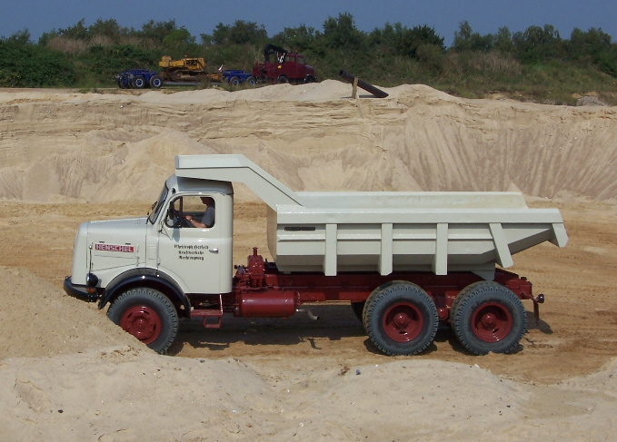 Der einzige restaurierte Henschel-Muldenkipper in der deutschen Oldtimer-Szene war auch zu Gast, Typenbezeichnung HS 3-125 AK aus dem Jahr 1960. Der ganze Stolz des ostfriesischen Sammlers Christoph Herfeld hatte hier zum erstem mal Gelegenheit, die 150 PS seines Turbomotors unter realistischen Bedingungen auszutesten.