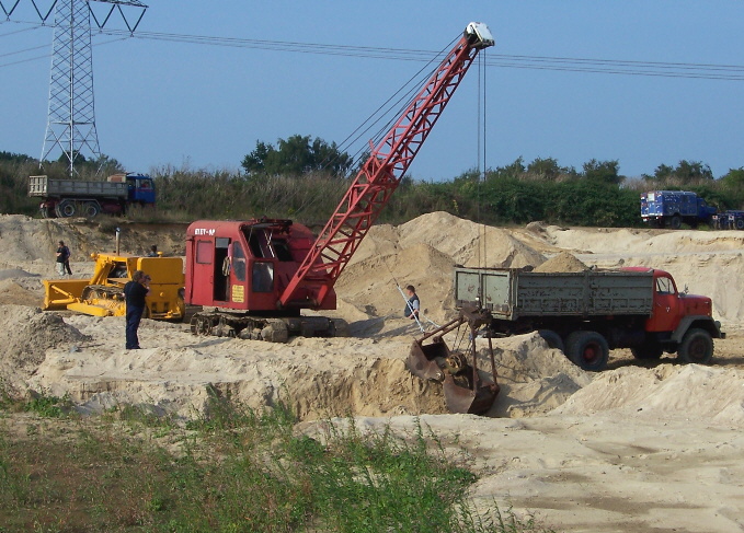 Was die beiden Planierraupen an der Grenze zum guten Spülsand nicht wegschoben, wurde vom O&K-Bagger auf die LKW verladen.
