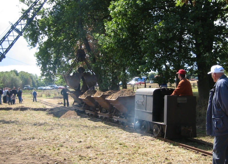 So ging es den ganzen Tag: Greifer für Greifer schaufelte der Menck-Bagger die Loren voll, wobei natürlich die anderen Ladegeräte auch mal eine Lore abbekamen.