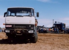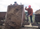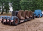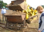Mit viel Einsatz kümmerten sich die angereisten Feldbahner der Museumsziegelei in Lage unter ihrem Anführer Bernhard Baumeister um den Aufbau und Betrieb der Feldbahnstrecke mit zwei Ladegleisen und einer Abkippstelle. Auch der Transport des Feldbahnmaterials konnte dank der Mithilfe von Sascha Theopold aus Lemgo mit einer alten Kaelble-Zugmaschine stilecht durchgeführt werden.
