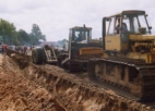 Die Vielzahl der Lade- und Planierraupen machte am Sonntag eine Neuauflage des Raupenrennens unumgänglich. Unter großer Anteilnahme der Besucher siegt im Vorwärtsgang die IHC-Laderaupe mit Klappschaufel, rückwärts war die Caterpillar D4 der schnellste Bolide im Feld.