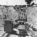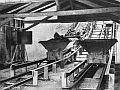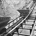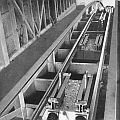 Die Schienenverbindung zwischen Bruch und Werk wurde also nach entsprechender Verbesserung des Oberbaues beibehalten und zur überwindung des Höhenunterschiedes von der Acker- zur Bruchsohle eine zweigleisige Kettenbahn mit endlos umlaufender Kette, nach dem bewährten System der DEMAG, eingebaut. Gleichzeitig wurde die Bruchsohle um weitere 5m abgestuft mit dem Ziel, den Abbau des gesamten Rohmaterials auf die nunmehr tiefste Sohle von 25m zu verlegen. Nach einer gewissen übergangszeit, die dazu benutzt wurde, auf dieser 25m-Sohle den entsprechenden Arbeitsraum zu schaffen, war dieses Ziel erreicht, und die Förderwege konnten , wie in Bild 1 zu sehen ist, von 2,5 km auf rund 1 km verkürzt werden.