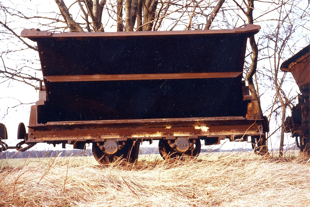 Während nun klar ist, daß zumindest zwei Deutz-Dieselloks OMZ117 der Wunstorfer Steinbruchbahn überlebt haben (eine davon bei den Feldbahnern in Oekoven), möchte ich die Aufmerksamkeit auf die in Wunstorf verwendeten Kipploren lenken. Mein Feldbahnkollege Volker Preine aus Hannover hat 1986 die an der Mergelgrube Wunstorf noch abgestellten Loren (welche von mir verschmäht wurden) glücklicherweise fotografiert und ausgemessen. Diese Bilder und auch das entsprechende Aufmaß möchte ich hiermit veröffentlichen.